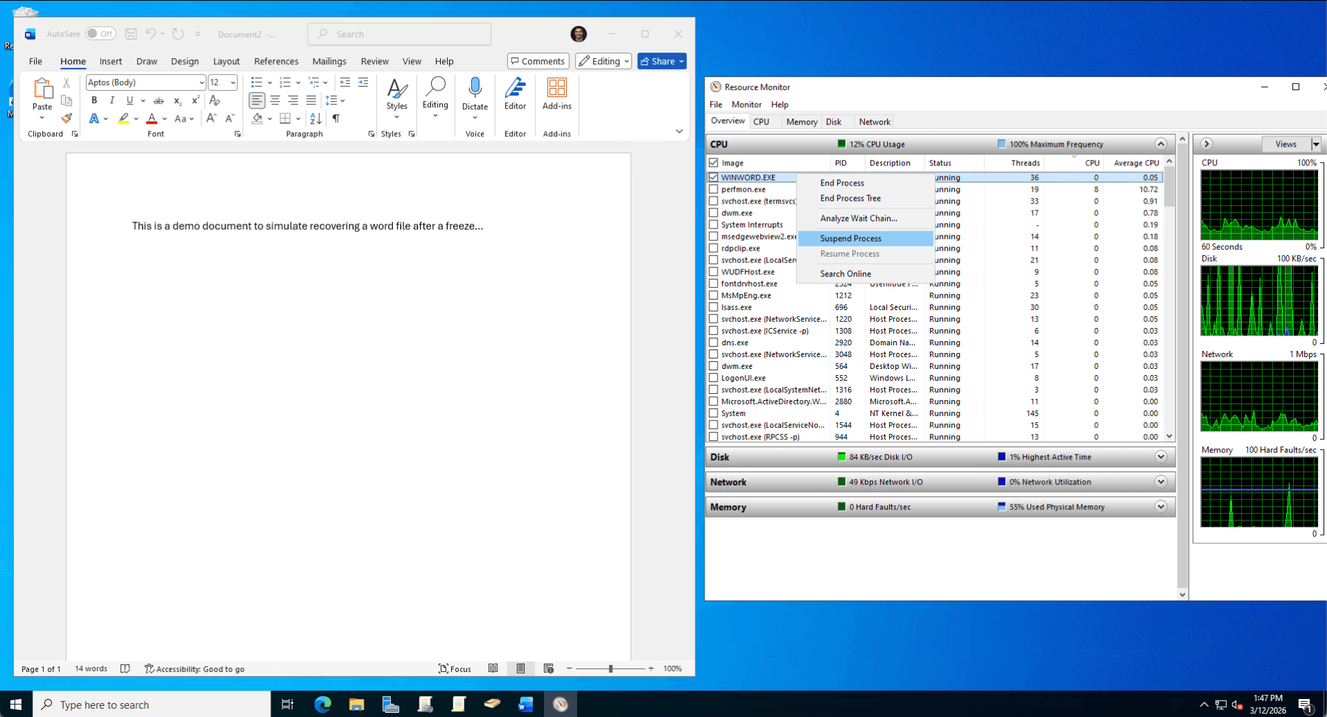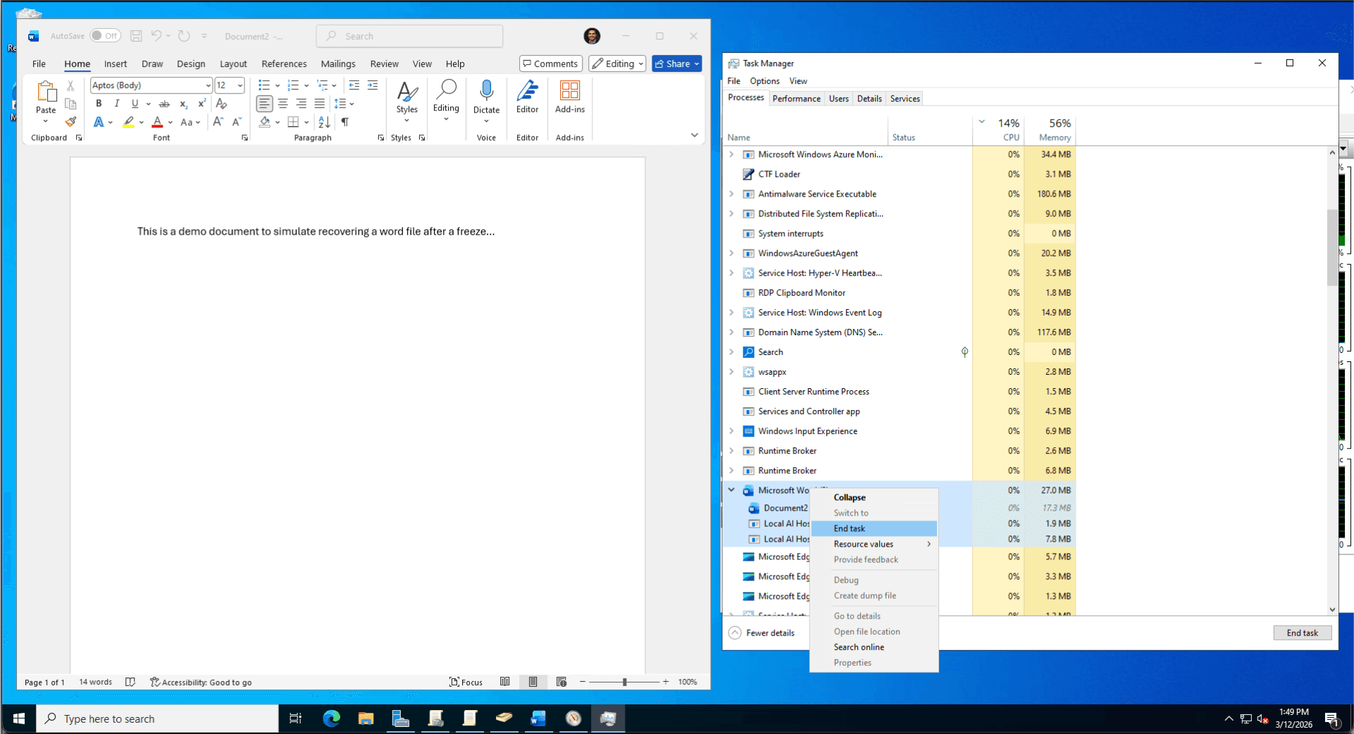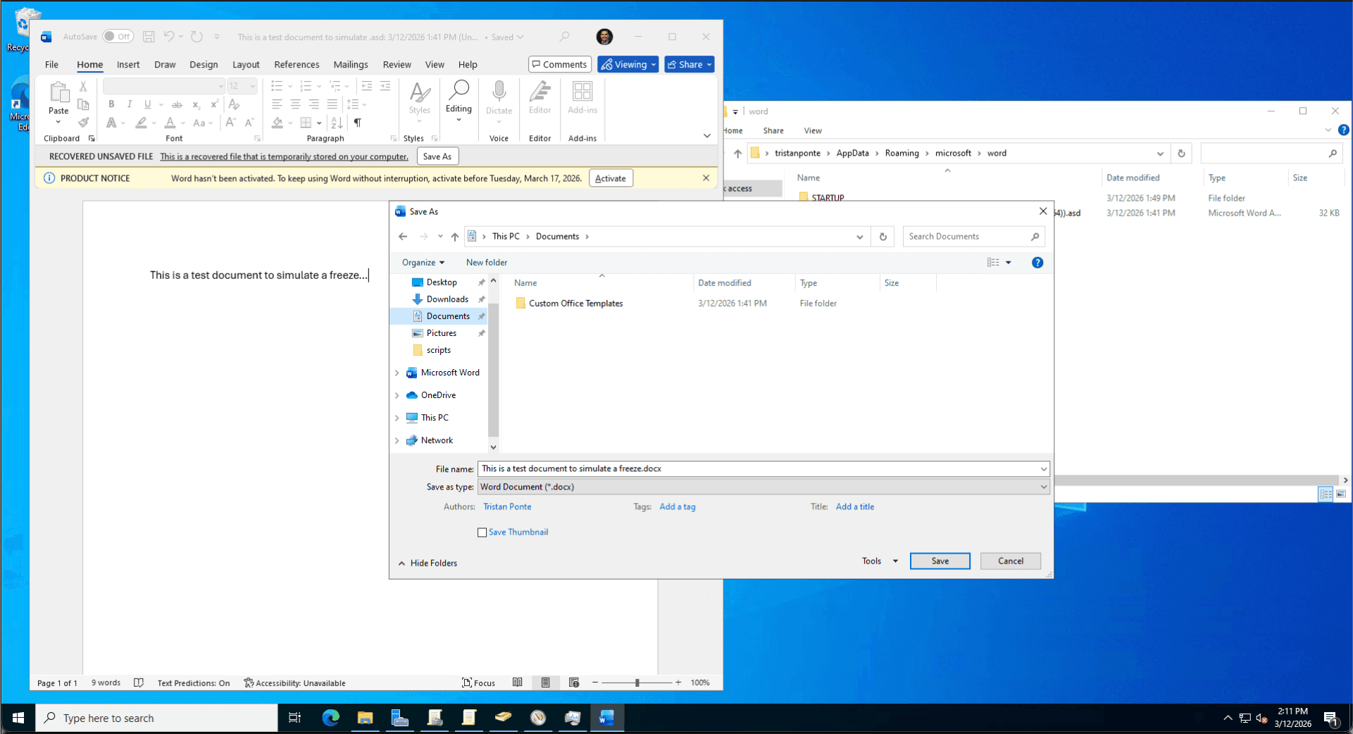 The Fix: I performed manual file system forensics, navigating to the hidden %AppData%\Microsoft\Word directory to locate the binary .asd snapshot file. Utilizing Word's internal "Recover Text from Any File" converter, I successfully extracted the user's unsaved draft, preventing total data loss.