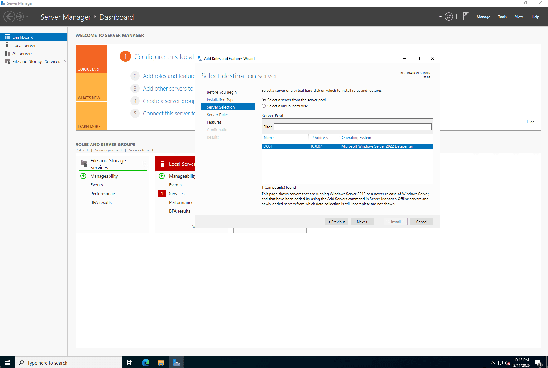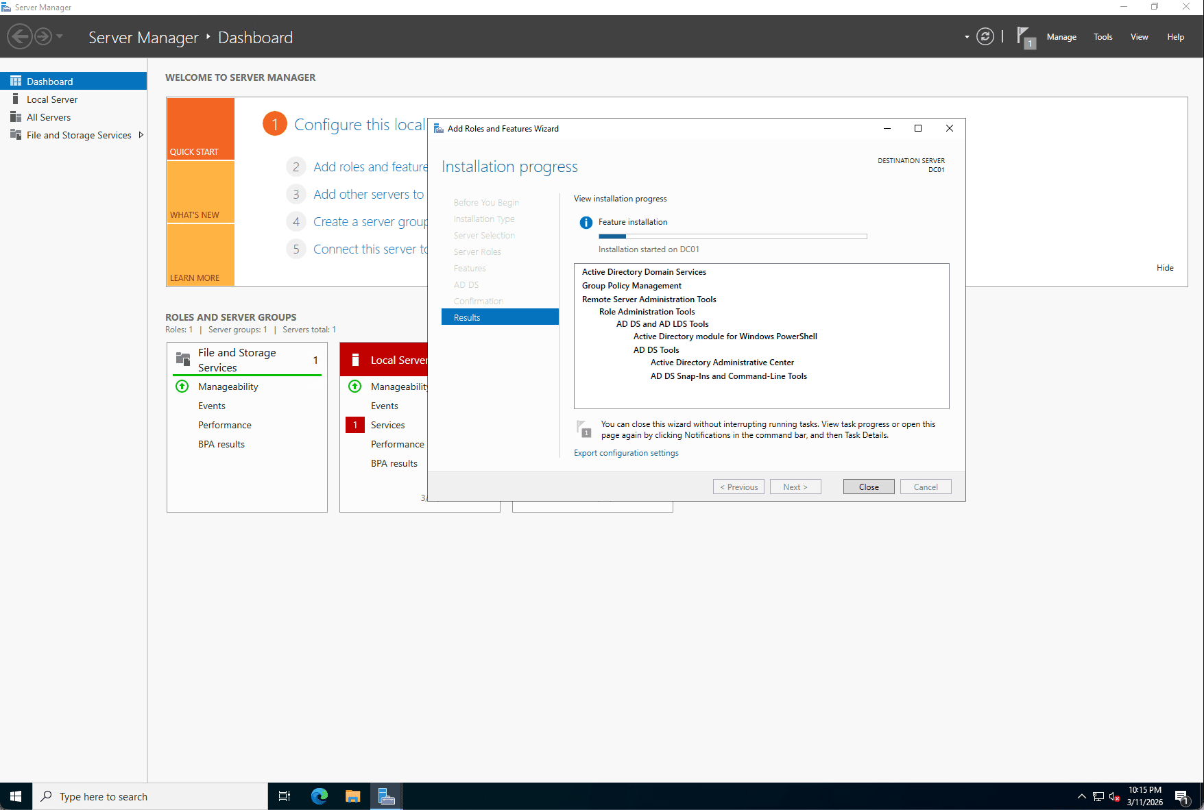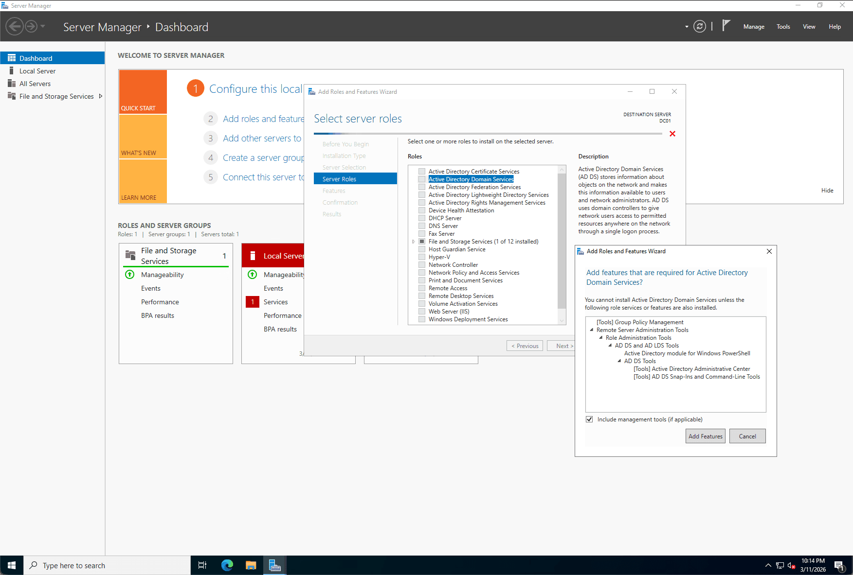 Step 2: Active Directory Domain Services (AD DS) Installation