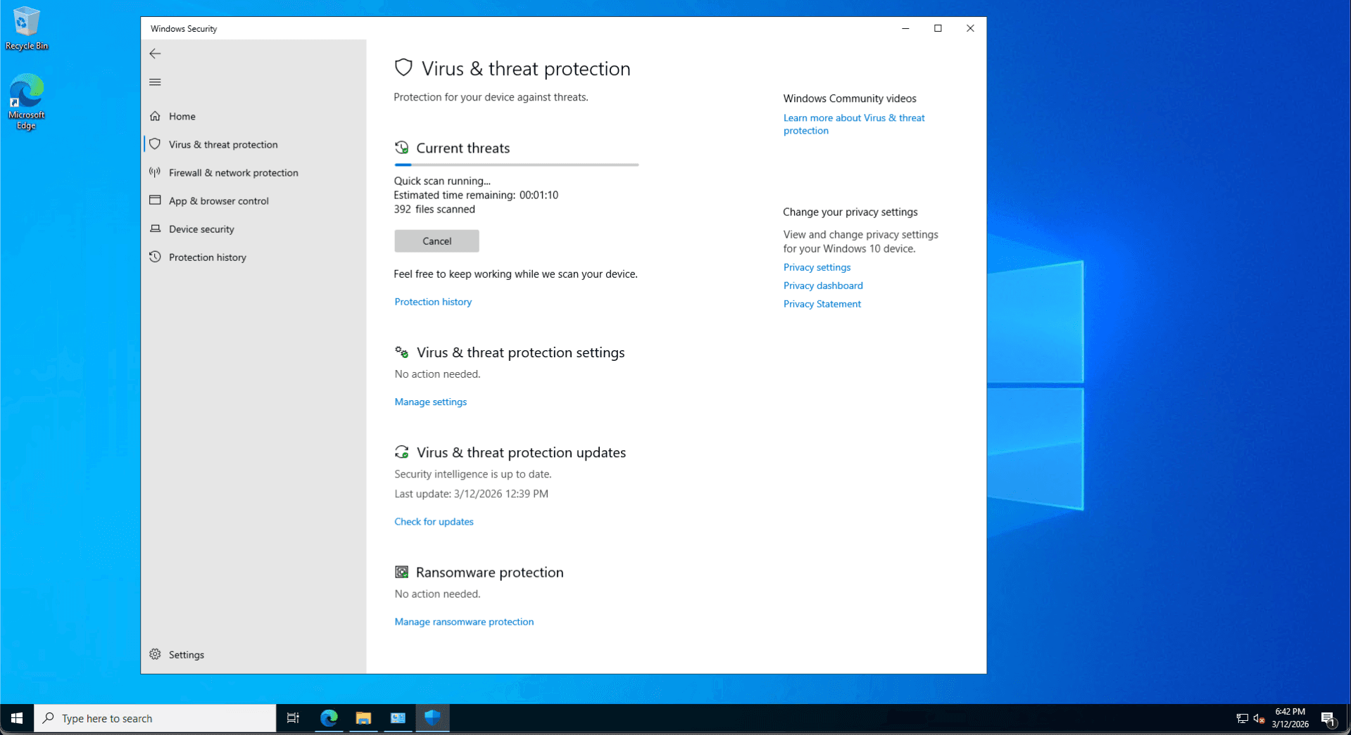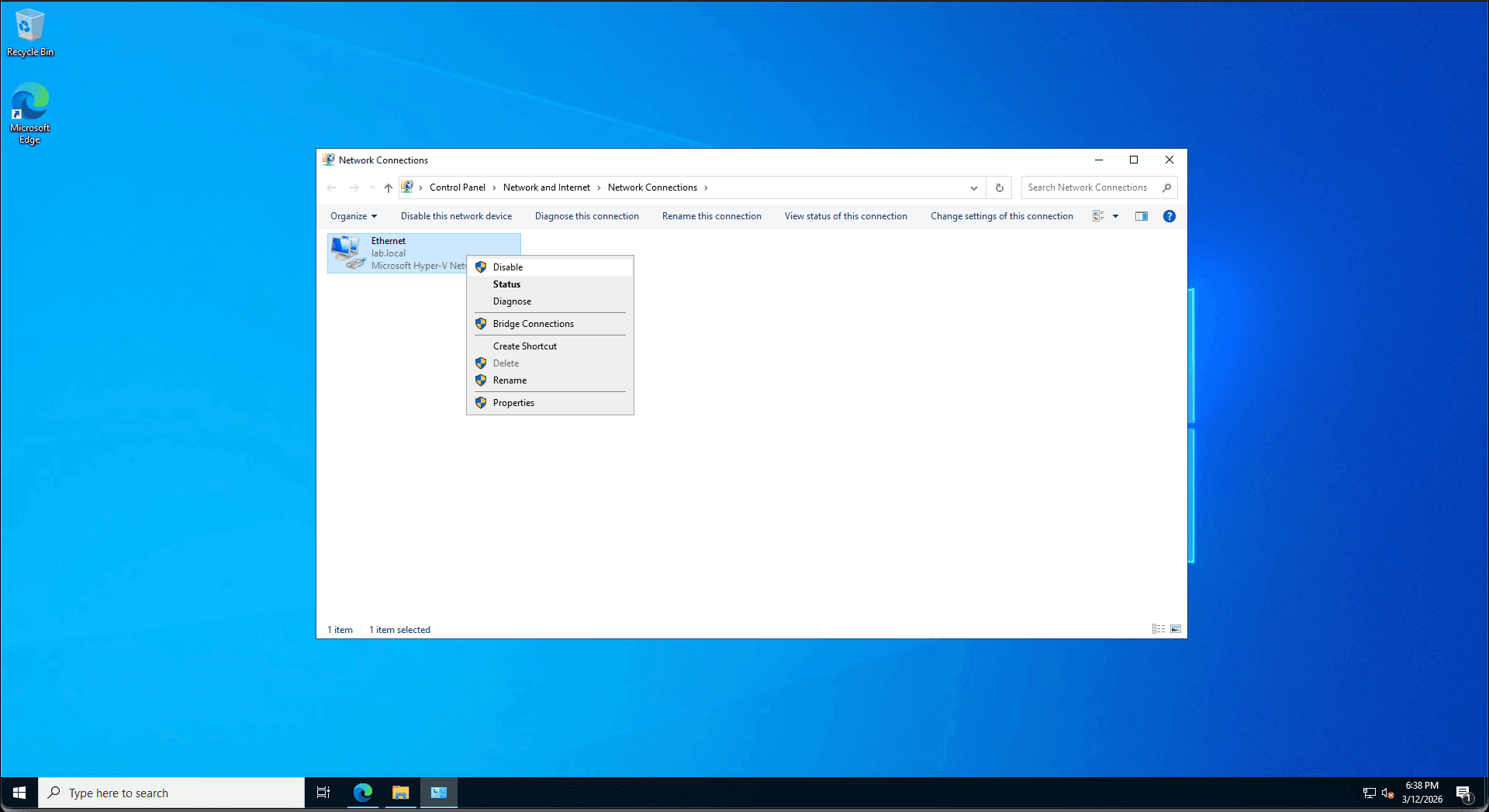 The Fix: Prioritizing network security, I immediately isolated the workstation by disabling the Ethernet adapter via ncpa.cpl, preventing potential lateral spread to the Domain Controller. I then executed a Windows Defender Quick Scan and audited the Protection History logs to verify system integrity before safely reconnecting the asset to the domain.