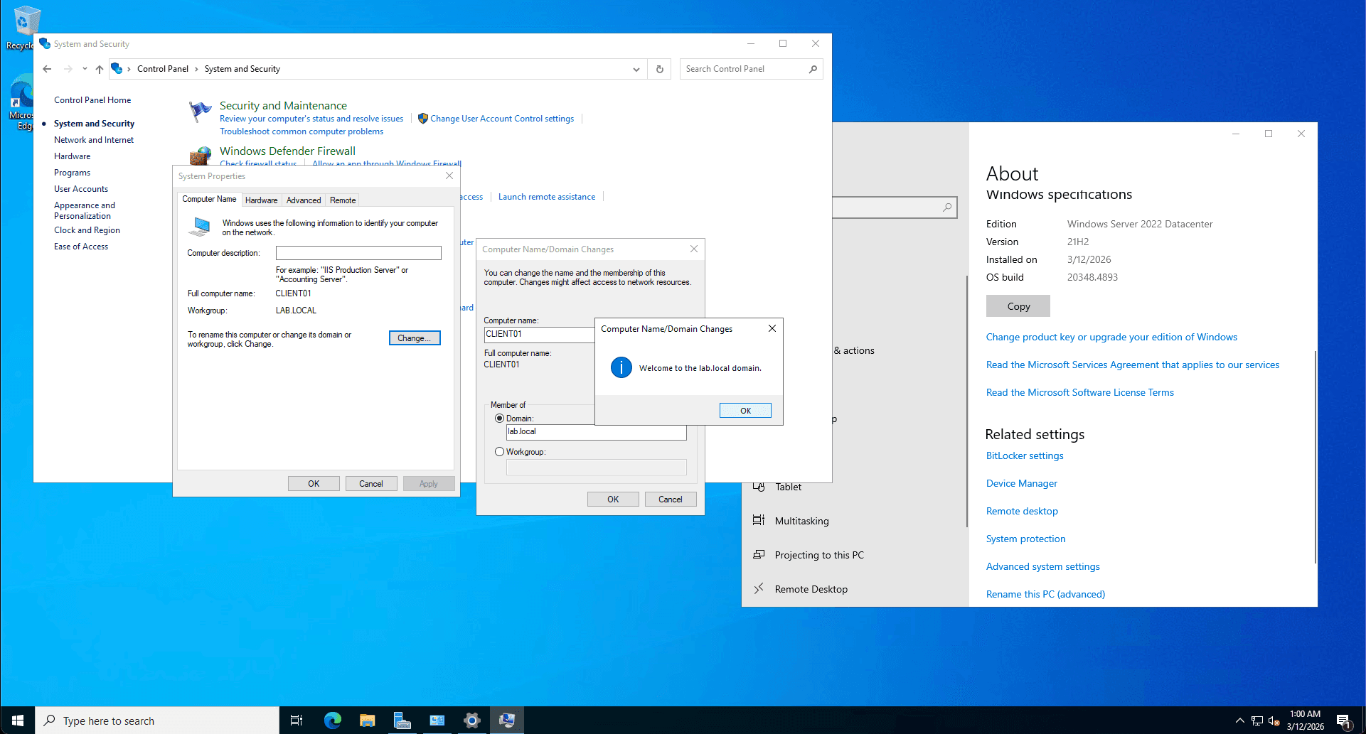 Step 7: Client Domain Join & DNS Configuration